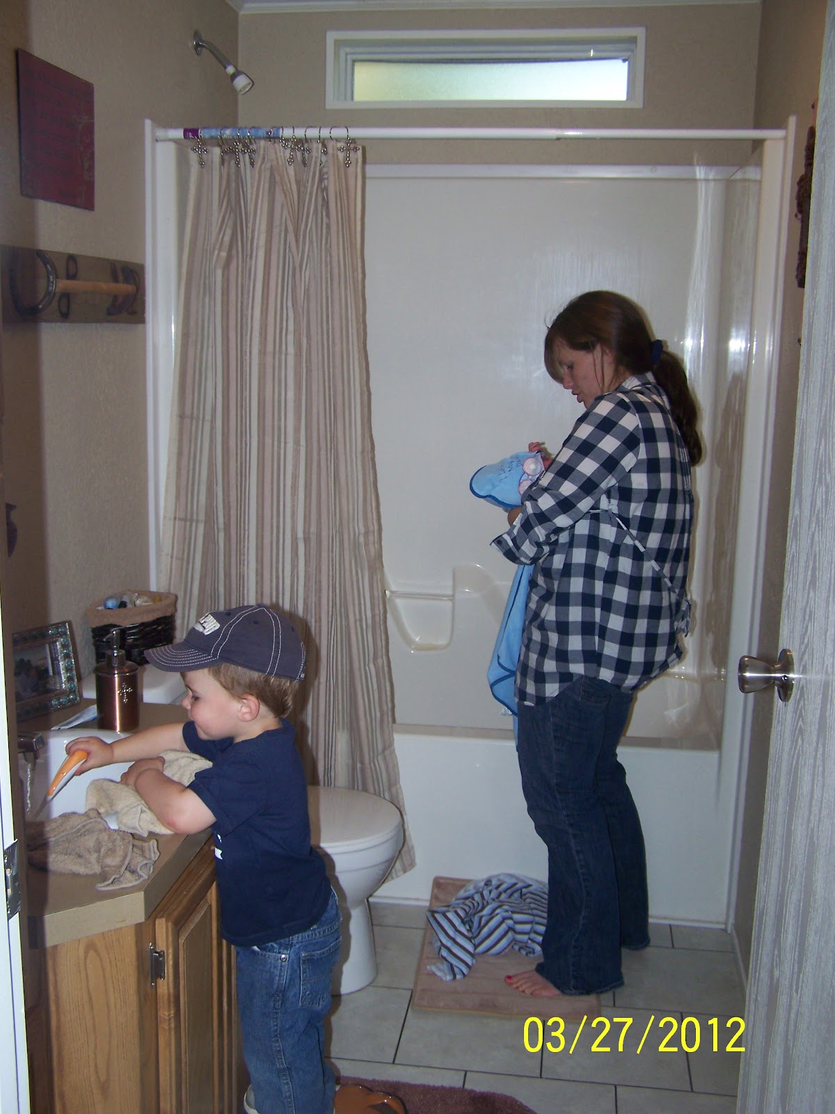 Cooper has still been great. He likes to hold Ace (but not for too long), and wants to help out whenever he can. He's always been a great helper though. When he would go outside to play and then come back in he'd look around to see where baby Ace was. He likes to know his whereabouts...sweet big brother. One really cute thing that happened: we were looking for a pacifier for Ace and Mom was asking where one was, when all of a sudden we heard a voice coming from Ace's room saying 'Mama? GG?' Mom went in to find Cooper in the crib holding out a pacifier. He'd climbed in the crib to get Ace's paci and couldn't get back out. What a sweet helper!! I wish I would have gotten a picture.